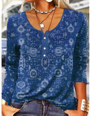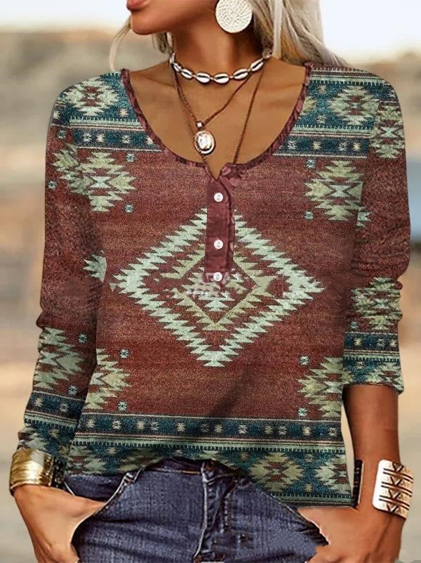 Apportez une touche de fraîcheur à votre style avec ce haut à manches longues signé Nivanoo. Ses motifs géométriques floraux et son col en U délicat lui donnent une allure féminine et raffinée, parfaite pour toutes les occasions.